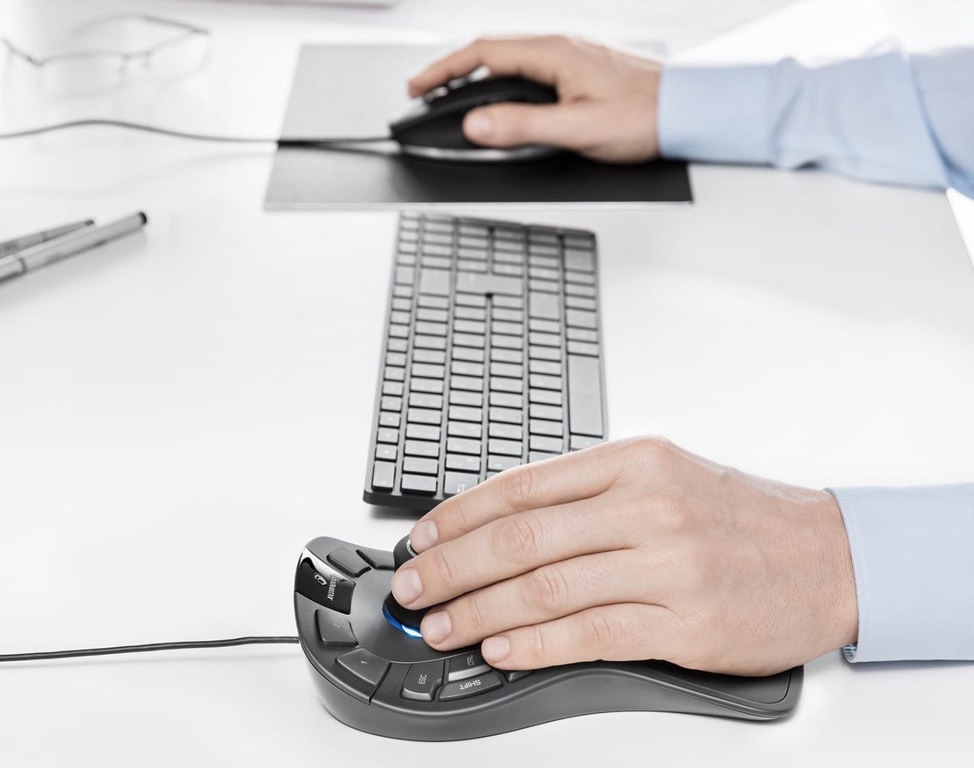 Модифікатори клавіатури SpaceMouse Pro забезпечують легкий доступ до функцій Control, Shift, Alt, Esc, заощаджуючи час за рахунок зменшення кількості рухів рукою до клавіатури.